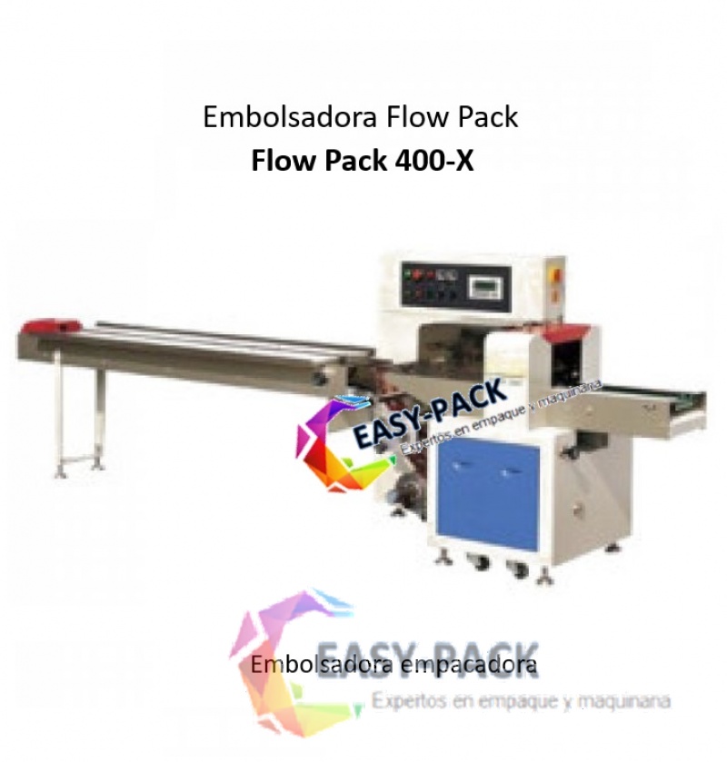 Multifuncional empacadora Flow Pack horizontal con film abajo de 400 mm de ancho.