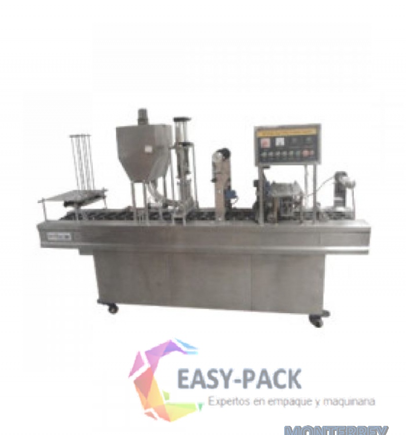 Maquina multifuncional llenadora y selladora de envases, pastosos 8 cavidades para vasos de 75 mm diámetro.