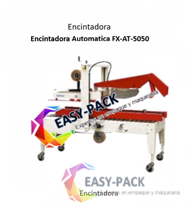 Maquina encintadora de cajas automatica modelo FX-AT5050, hara que el proceso de empaquetado en cajas resulte mas rapido y sencillo.