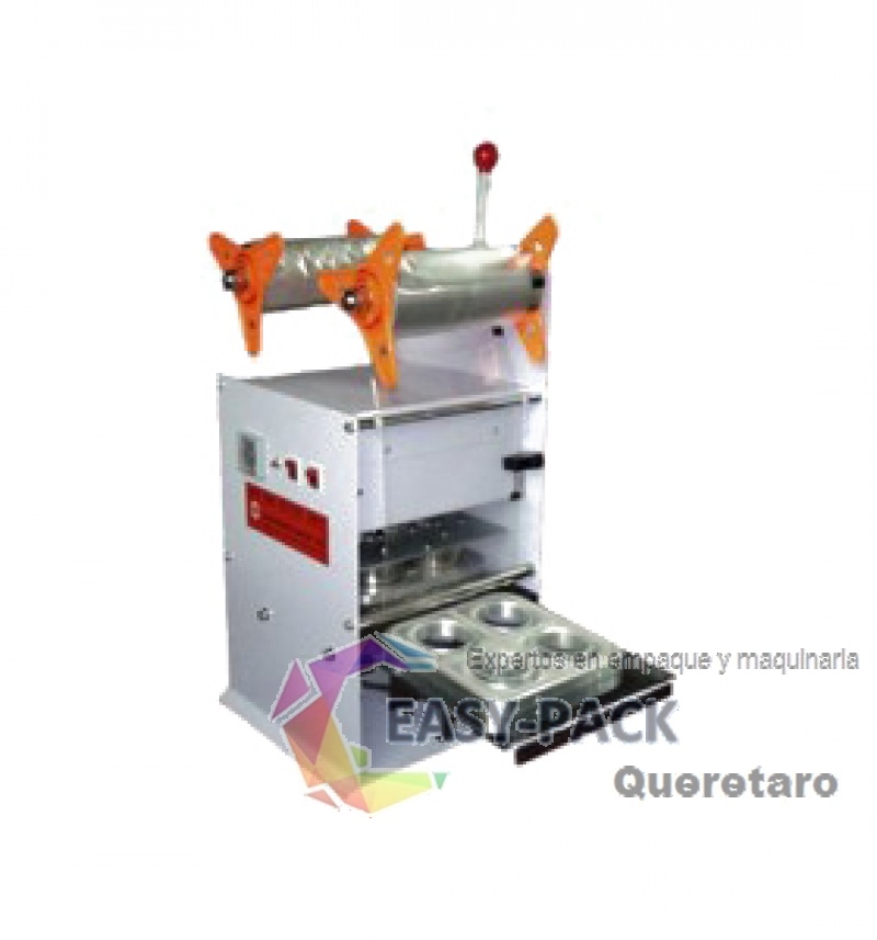Descripción breve: Selladora para 4 vasos Semi-Automático. FICHA TÉCNICA Fuente de Alimentación 110V / 220V – 50 / 60 Hz Potencia 1000 w Tamaño de la Maquina 450 X 450 X 730 mm Capacidad 2400 / hora Diámetro 75 mm Peso de la Maquina 30 kg