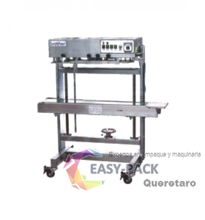 Selladora de banda continua vertical para trabajo pesado, con impresion en tinta.