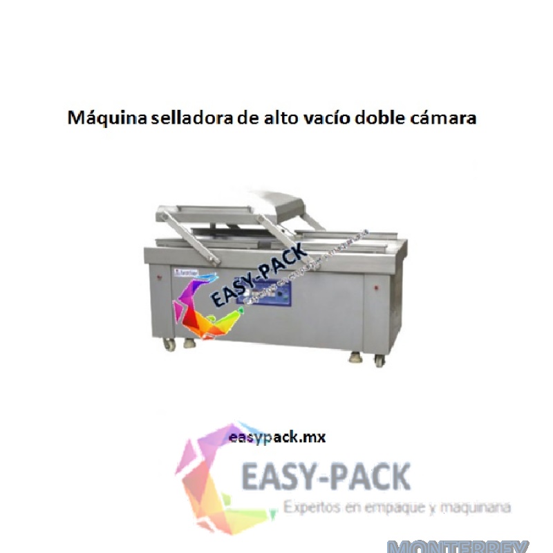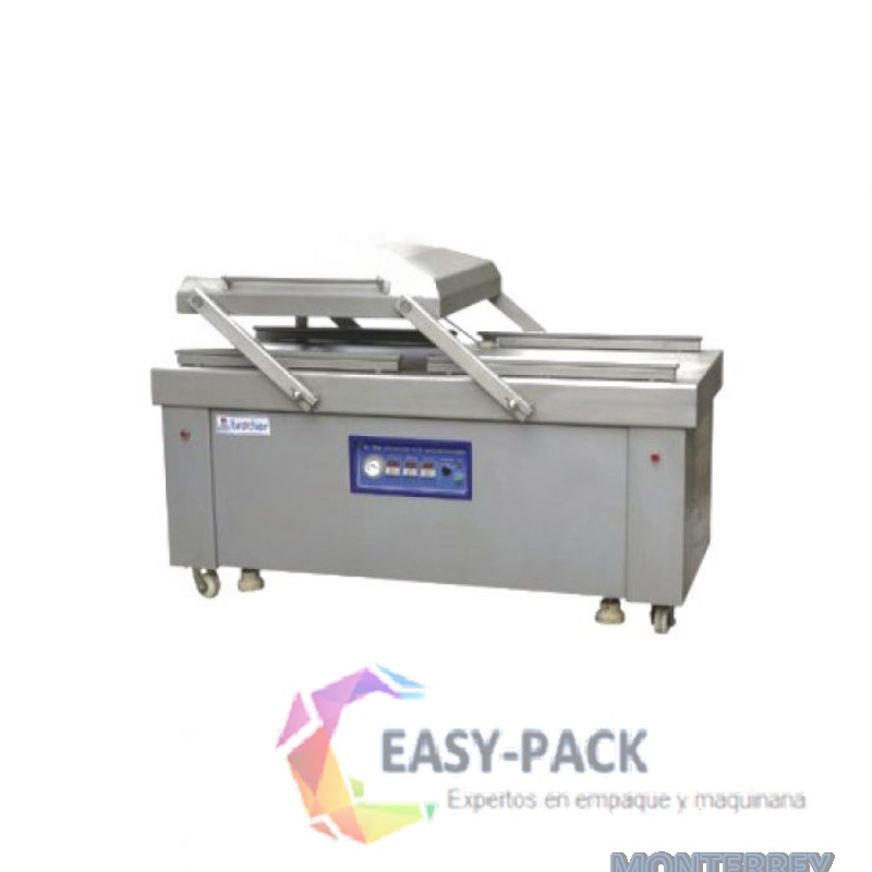 Máquina selladora de alto vacío doble cámara. Cuenta con sistema de adición de gas inerte para mayor tiempo de conservación del producto.