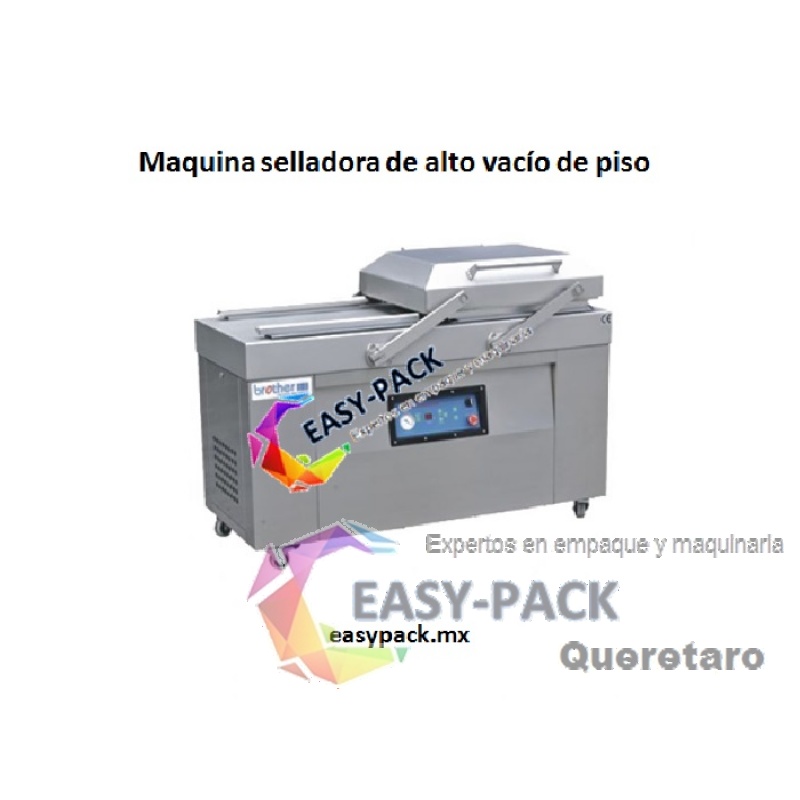 Maquina selladora de alto vacío de piso, doble cámara, cuenta con sistema de adición de gas inerte para mayor tiempo de conservación del producto.