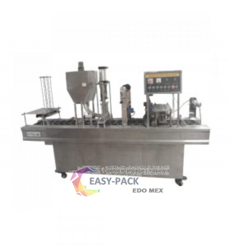 Maquina multifuncional llenadora y selladora de envases, pastosos 8 cavidades para vasos de 75 mm diámetro.