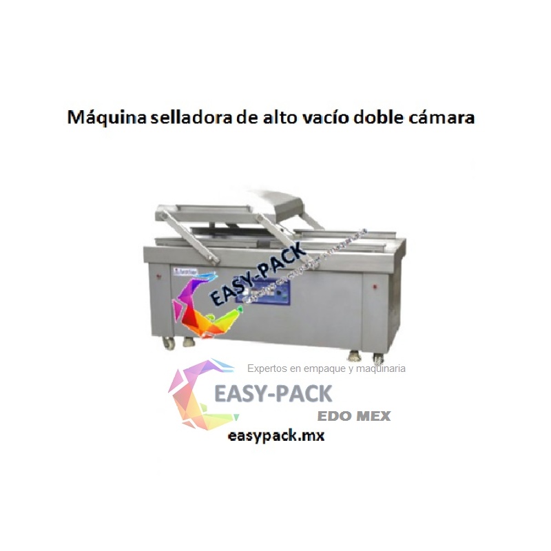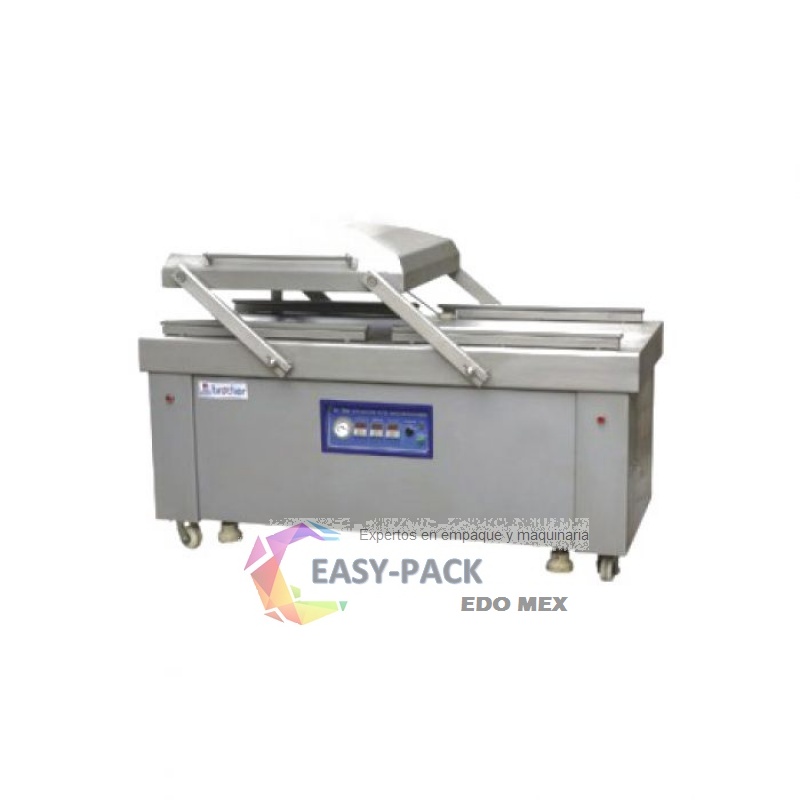Máquina selladora de alto vacío doble cámara. Cuenta con sistema de adición de gas inerte para mayor tiempo de conservación del producto.